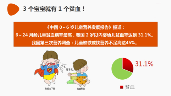 作為寶媽,你可知道,“缺鐵性貧血”為世界四大營養缺乏疾病之一,3個寶寶就有1個貧血,而缺鐵危害不可逆! 《中國0~6歲兒童營養發展報告》報道:6~24...
