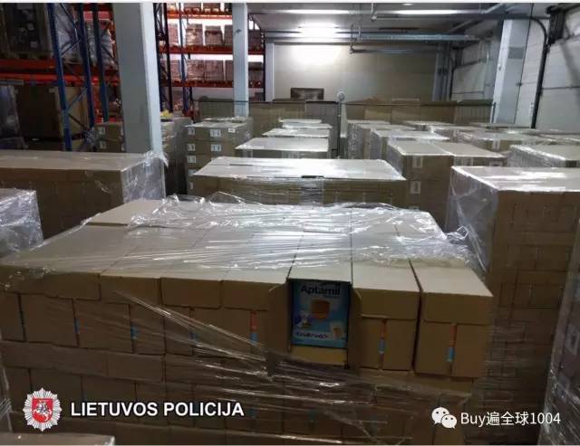 被查封的倉庫一角 此倉庫內有1.8萬盒(總重11噸)愛他美配方奶粉假貨,總價值約24萬歐元。據悉,這些假貨均使用德國版包裝。立陶宛警方提供的視頻 愛他美奶粉產自德國,是德國美樂...