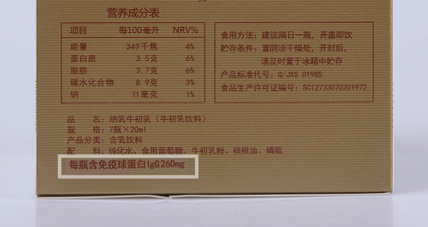 • 童聰納乳牛初乳,每瓶含免疫球蛋白260mg,滿足