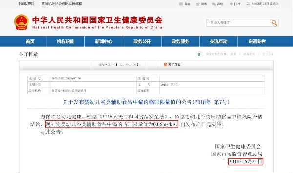 • 新政|兩部委聯合發布規定嬰幼兒谷類輔食鎘含量制定