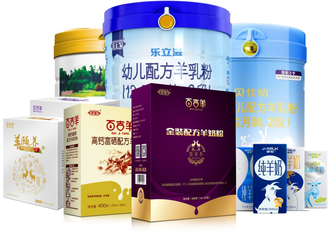 品牌介紹 圣妃乳業產品品牌覆蓋各年齡段人群,主要包括: 3款通過國家配方注冊的嬰幼兒配方羊奶粉:樂立滋嬰幼兒配方羊奶粉、貝佳怡嬰幼兒配方羊奶粉、好多羊嬰幼兒配方羊奶粉; 2款三歲以上人群營養型羊奶粉:百吉羊高鈣富硒配方羊奶粉、百吉羊金裝配方羊奶粉; 4款成人功能型羊奶固體飲料:羊頤養蛹蟲草枸杞羊奶固體飲料、羊頤通EGCG地龍蛋白羊奶固體飲料、養頤康昆布苦瓜羊奶固體飲料、養頤動殼寡糖蠶蛹羊奶固體飲料; 5款液態羊奶:卓牧純羊奶、卓牧精選純羊奶、卓牧貴乳純羊奶、卓牧兒童羊奶、卓牧核桃羊奶。