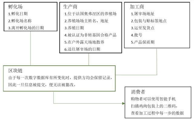 雀巢、都樂食品、聯(lián)合利華和泰森食品都正在與他們最大的客戶沃爾瑪合作,完成由國際商業(yè)機器公司(簡稱IBM)搭建的區(qū)塊鏈平臺。克羅格以及中國第二大電子商務(wù)平臺京東商城也在使用IBM的這一平臺。家樂福則自行開發(fā)了自己的系統(tǒng)。“區(qū)塊鏈在食品可追溯性方面能做的事情和互聯(lián)網(wǎng)在通信方面的貢獻(xiàn)一樣,”沃爾瑪公司負(fù)責(zé)食品安全和健康的副總裁弗蘭克·安納斯如此說道。 通過區(qū)塊鏈追溯食品來源 農(nóng)業(yè)公司正嘗試?yán)脜^(qū)塊鏈軟件來為自己的產(chǎn)品建立誠信。各方參與者都應(yīng)提供自己所屬供應(yīng)鏈相應(yīng)環(huán)節(jié)的細(xì)節(jié)。下圖是法國連鎖超市家樂福所出售的某份來自奧弗涅區(qū)的雞肉產(chǎn)品的數(shù)據(jù)點。