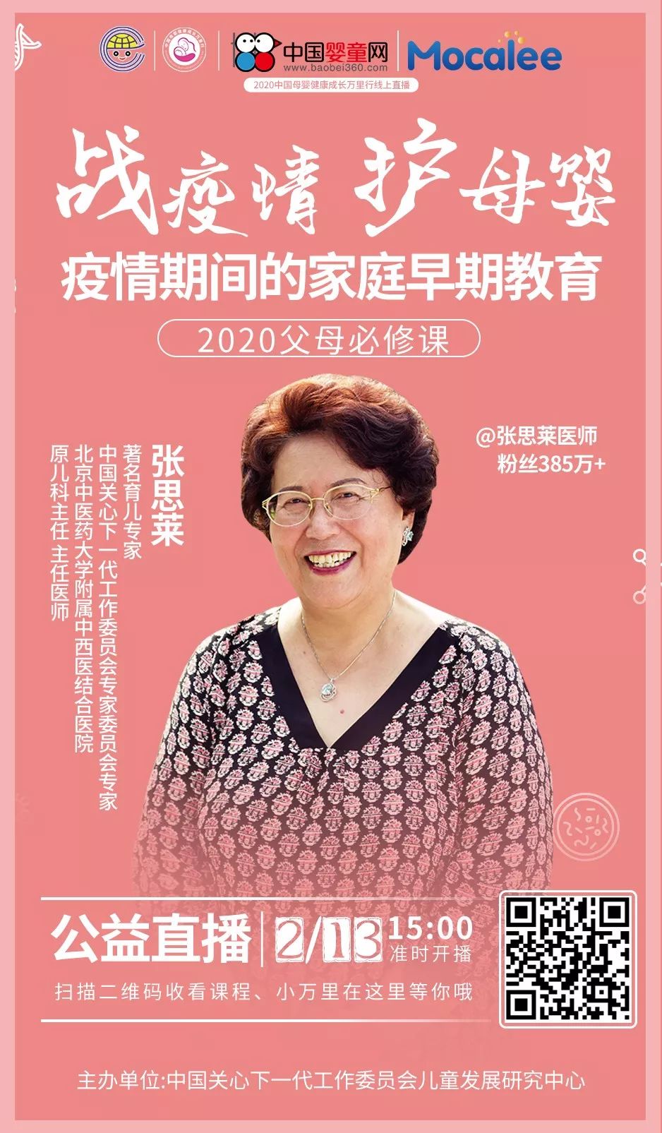 戰(zhàn)疫情,護母嬰,邁康立在行動!點擊海報圖,查看直播介紹小視頻。 邁康立攜手中國關(guān)心下一代工作委員會兒童發(fā)展研究中心、“國民奶奶”張思萊推出的大型公益直播《疫情期間的家庭早期教育》,將于️2020年2月13日15:00—16:00播出,歡迎您屆時收看,不見不散! 【直播專家】 “國民奶奶”張思萊醫(yī)師是國內(nèi)在線咨詢專家之一,擔任中央電視臺、中央廣播電臺、北京衛(wèi)視、湖南衛(wèi)視、山東衛(wèi)視等育兒節(jié)目嘉賓,微博微信粉絲近500萬。線上、線下科普近20年,線下、線上講座近500場,累計參與人數(shù)50,000,000,線上、線下累計覆蓋5億人次。 【直播內(nèi)容】 -兒童早期智慧主要體現(xiàn)在動手能力上。 -每個月齡段我們該如何培養(yǎng)孩子的動手能力。 -在新型冠狀肺炎疫情的特殊時期,家長應(yīng)該如何做才不會錯過孩子動手能力培養(yǎng)的關(guān)鍵期? 【如何聽課】 1.掃描海報二維碼進入直播間聽課。 2.生成邀請碼,邀請更多朋友進行聽課。 |