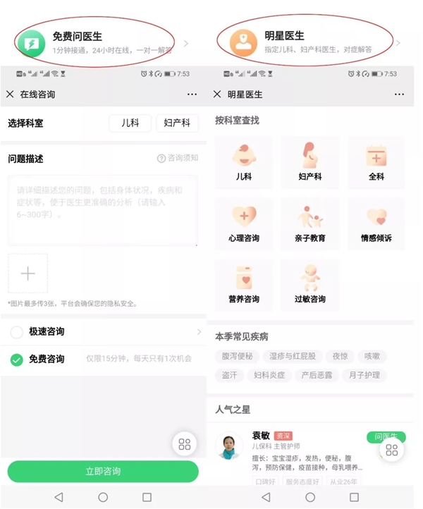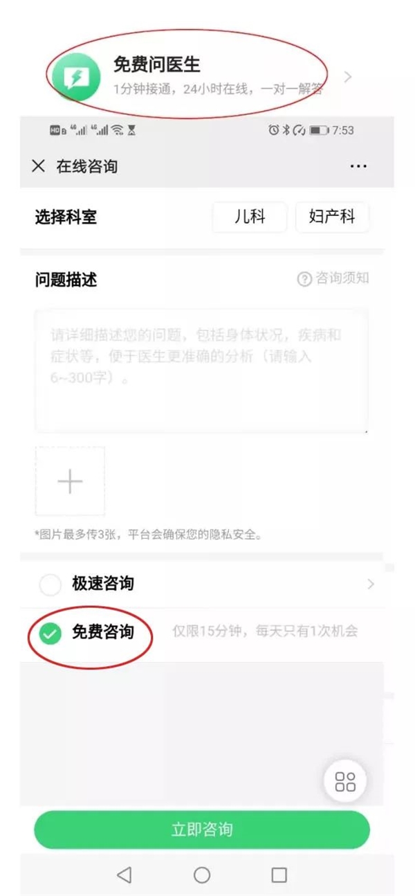 Step2:進入主界面,點擊“免費問醫生”獲得免費咨詢