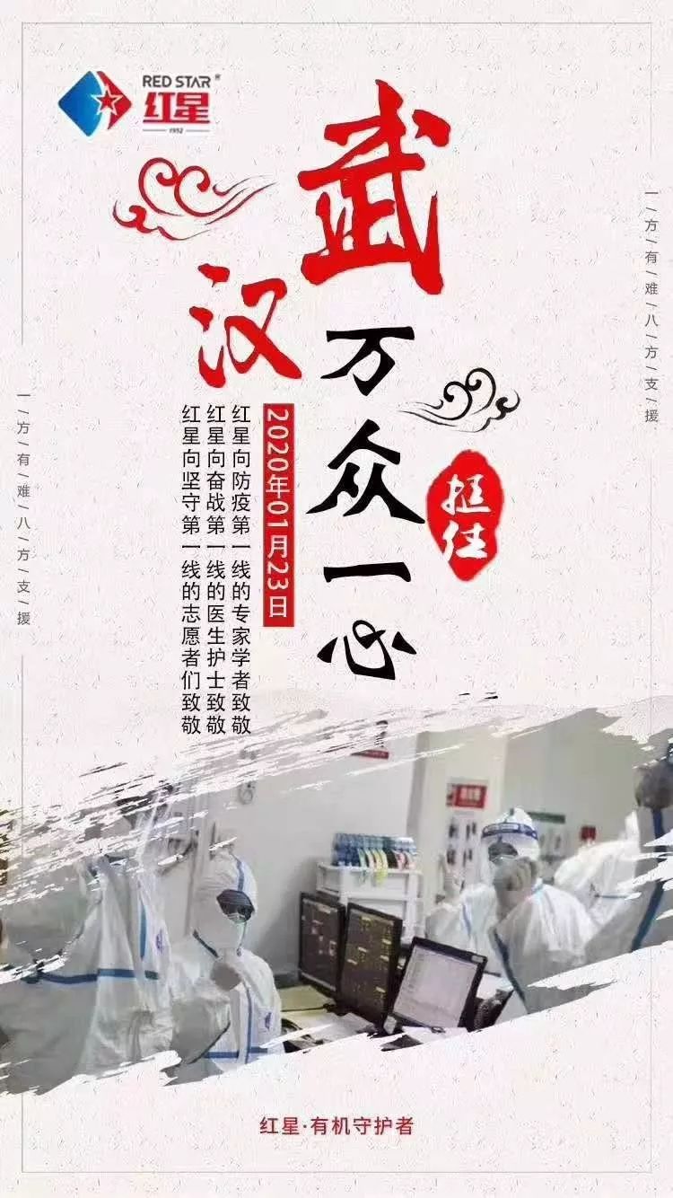 他們是很偉大,但他們不是神,他們有父母妻兒,有喜怒哀樂,他們也會疲憊,也會受傷!他們出發前,也許會跟孩子說,“寶貝在家要乖,按時寫作業,萬一爸爸媽媽需要隔離,不要給爺爺奶奶添亂。 面對父母孩子,他們也會不舍,也會愧疚,可因為責任和擔當,只能將小家拋到身后,用大愛鑄起一片希望。但他們依然選擇,在痛哭之后奮勇前進! 這樣一個又一個真實而鮮活的故事每天都在前線發生,可幸有著這群醫護人員在最危險的地方克服重重難關,犧牲自我,手挽手、肩并肩筑起一道堅不可摧的生命防線。 在抗擊新型冠狀病毒的戰役當中,醫護人員是戰場上的中堅力量,正是有他們的不懈努力,讓我們看到了戰勝疾病的曙光。前線醫護人員在最困難的地方奮戰,要保護好他們,才能救治更多的病人。 疫情當前,紅星集團將承擔起應盡的社會責任,與廣大醫護人員攜手,共同擊退新型冠狀病毒! 讓我們一起攜手,眾志成城,共渡難關!