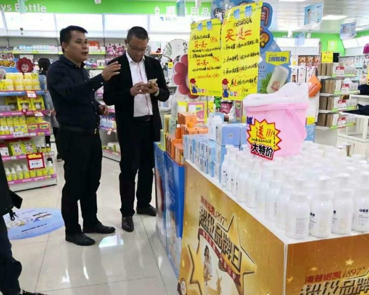 田總在運營商桂林泰盛商貿有限公司王總、余總陪同下拜訪桂林好寶貝孕嬰童連鎖系統各門店 運營商桂林泰盛商貿有限公司王總講解OBS歐貝氏在桂林好寶貝孕嬰童連鎖系統銷售情況