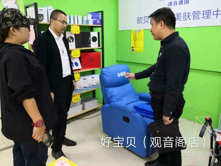王總對OBS歐貝氏美膚管理中心運營情況作出反饋 田總與桂林好寶貝孕嬰童連鎖黎經理在府后里店“偶遇”,積極聽取黎經理對市場情況的反饋及建議,田總很是認可,同時非常感謝好寶貝系統給予的大力支持