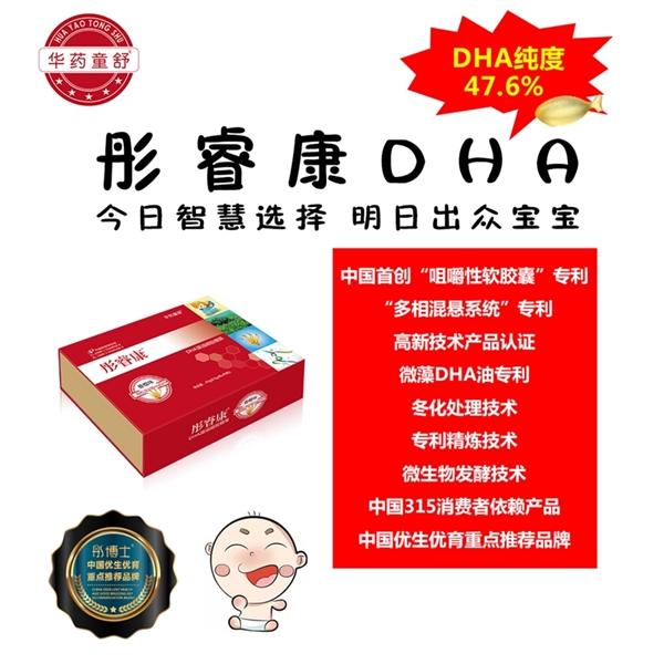 | 華藥童舒彤睿康DHA,以原料純凈,專利技術,助力成長! |