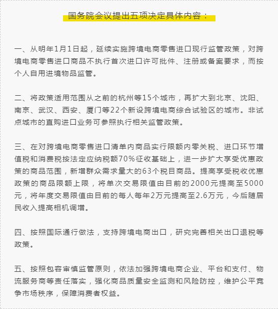 近年來,消費者對嬰幼兒配方奶粉日益關(guān)注,而進(jìn)口產(chǎn)品更是受到消費者“青睞”,根據(jù)中國奶業(yè)協(xié)會官網(wǎng)數(shù)據(jù),2017年我國進(jìn)口嬰幼兒配方奶粉為29.6萬噸,同比增長33.37%。在奶粉線上銷售部分,外資奶粉優(yōu)勢依舊非常明顯。另外在跨境電商領(lǐng)域中,嬰幼兒配方乳粉進(jìn)口增長勢頭非常迅猛。在跨境電商產(chǎn)品中,母嬰類排名第一,而嬰幼兒配方乳粉又是其中炙手可熱的暢銷品,嬰幼兒奶粉跨境購已發(fā)展成為進(jìn)口奶粉消費的重要渠道。受2018奶粉配方注冊制和2019《電商法》的限制,不少外資品牌和跨境電商一直提心吊膽,但昨天的國務(wù)院會議提出五項新規(guī)定,跨境電商零售進(jìn)口繼續(xù)現(xiàn)行政策,如今跨境購政策不斷松綁原因何在,這對十分依賴這一渠道進(jìn)口的奶粉行業(yè)又將有怎樣的影響? 國務(wù)院規(guī)定從明年1月1日起,延續(xù)實施跨境電商零售進(jìn)口現(xiàn)行監(jiān)管政策,對跨境電商零售進(jìn)口商品不執(zhí)行首次進(jìn)口許可批件、注冊或備案要求,而按個人自用進(jìn)境物品監(jiān)管。其實針對跨境電商零售進(jìn)口商品,政策曾多次進(jìn)行調(diào)整。2016年4月8日,我國對跨境電子商務(wù)零售進(jìn)口商品實施新稅制,并實行清單管理(48新政)。核心為調(diào)整關(guān)稅、正面清單、通關(guān)單三項內(nèi)容:即在稅收層面,實施跨境電子商務(wù)零售進(jìn)口稅收政策;在通關(guān)層面,參照進(jìn)口商品正面清單,需按貨物驗核通關(guān)單,并對化妝品、嬰幼兒配方奶粉等商品提出了首次進(jìn)口許可批件等要求。但之后,新政不斷延期過渡。 不可否認(rèn),“48新政”的出發(fā)點是好的,比如,嬰兒食品、藥品等要符合中國的標(biāo)準(zhǔn),保護(hù)好消費者的權(quán)益,但在執(zhí)行層面,參照一般貨物貿(mào)易管理,在通關(guān)單等問題上,獲取進(jìn)口資格的備案、通關(guān)單和質(zhì)檢證明,這都需要很長的周期,而嬰兒奶粉、食品、藥品等商品時效性很強,在執(zhí)行力度上會遇到較大問題,為了適應(yīng)跨境電商的行業(yè)特征,因此新政一再延期過渡。 關(guān)于這一系列政策過渡期延長,商務(wù)部電子商務(wù)和信息化司司長騫芳莉就表示過:“我們將堅持鼓勵創(chuàng)新包容審慎的原則,按照‘暫按個人物品監(jiān)管’的總體思路,優(yōu)化完善監(jiān)管措施,同時保證監(jiān)管安排的總體穩(wěn)定。”因為若將跨境進(jìn)口商品按照“貨物”定性,就會使得美妝、保健品等商品無法正常進(jìn)區(qū),而若定性為“個人物品”,其將不再受制于一般貿(mào)易的監(jiān)管。 也就是說嬰兒奶粉跨境將不受國內(nèi)配方注冊制限制,資料顯示,截止目前,獲得配方注冊的奶粉品牌多是國產(chǎn)品牌,而跨境電商不在奶粉新政的范圍之內(nèi),也就是很多外資品牌雖然不能拿下配方注冊,但仍然可以通過跨境電商渠道進(jìn)入中國市場。 同時規(guī)定在進(jìn)一步擴大享受優(yōu)惠政策的商品范圍,新增群眾需求量大的63個稅目商品。提高享受稅收優(yōu)惠政策的商品限額上限,將單次交易限值由目前的2000元提高至5000元,年度交易限值由每人每年2萬元提高至2.6萬元,今后隨居民收入提高相機調(diào)增。 數(shù)據(jù)顯示,以多元化、品質(zhì)化為優(yōu)勢的進(jìn)口商品類消費持續(xù)擴大。商務(wù)大數(shù)據(jù)顯示,1-9月份,化妝品、糧油食品和服裝進(jìn)口消費品網(wǎng)絡(luò)零售額排名前三,分別占跨境進(jìn)口網(wǎng)絡(luò)零售額的33.6%、22.2%和13.8%。居民年交易額的提升,不僅僅滿足了國民對消費升級的需要也意味著對于跨境奶粉電商而言,奶粉的需求量可能增加,銷售額將進(jìn)一步擴大。 再者,2017年國務(wù)院發(fā)布的《國務(wù)院關(guān)稅稅則委員會關(guān)于調(diào)整部分消費品進(jìn)口關(guān)稅的通知》終就表示,自2017年12月1日起,以暫定稅率方式降低部分消費品進(jìn)口關(guān)稅,范圍涵蓋食品、保健品、藥品、日化用品、衣著鞋帽、家用設(shè)備、文化娛樂、日雜百貨等各類消費品,共涉及187個8位稅號。其中就包含特配粉,特配粉的關(guān)稅減免為零對中國特配粉行業(yè)發(fā)展很不利,目前我國的特配粉還在起步階段,還需要國內(nèi)企業(yè)加大投入研發(fā),而國外特配粉關(guān)稅減免后競爭優(yōu)勢將更加明顯,這對國內(nèi)特配粉的研發(fā)創(chuàng)新都是一種打擊。 但近年來隨著跨境電商的迅速發(fā)展,也給消費者帶來了眾多問題,如:假貨泛濫、信息泄露、刷好評銷量、虛假宣傳等等,甚至還衍生出造假產(chǎn)業(yè)鏈,代購視頻、小票、快遞運單、購物發(fā)票等都能以假亂真。雖然政策放寬,但監(jiān)管制度會加強,即將實施的《電商法》對跨境電商提出了約束,對經(jīng)營規(guī)模較大、頻率較高的職業(yè)代購做出了嚴(yán)格規(guī)范,對嬰幼兒食物、保健品、化妝品等進(jìn)口商品的質(zhì)量監(jiān)控更加嚴(yán)苛,保證了消費者的權(quán)益。
