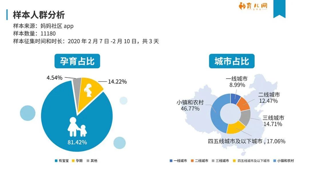 為了解疫情之下,母嬰人群的消費行為,探究行為改變背后的原因,我們在2020年2月7日~2月10間,從“媽媽社區”APP中調查收集了11180個有效樣本,樣本數據如下: