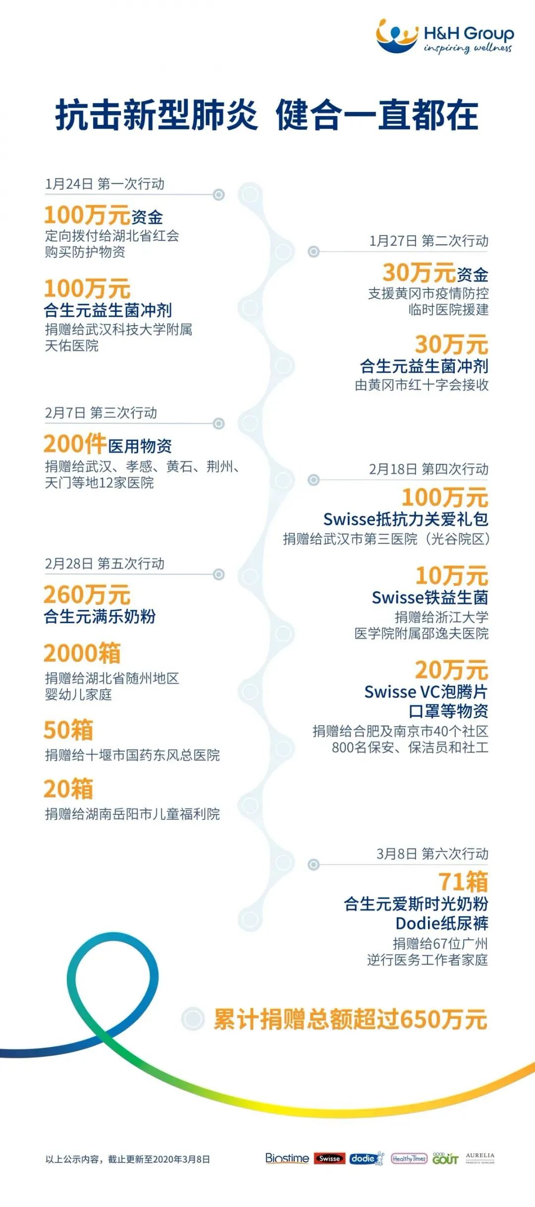 廣東嬰童協會會員企業付出大愛行動系列報道——健合集團、億百、洋蔥集團、寶德、宏樂、保時健、綠臣等捐贈事跡。 健合集團,眾志成城,“合”力抗疫。截止目前為止,集團總共發起了6次抗“疫”馳援行動,累計捐款捐物逾650萬。為奮戰在一線的逆行英雄們和有需要的寶寶家庭提供了有力支持,為抗擊疫情盡一份力。