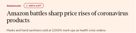 這次美國突然豁免“中國口罩”等醫療產品關稅的行為的背后,也正式暴露出:美國口罩真的“慌”了。 美國:口罩緊缺,價格飆升20倍 美國衛生與公共服務部(HHS)曾預計,若新冠肺炎大規模爆發,美國將需要35億只口罩。而當前,美國僅有不足5000萬只口罩的庫存。美國衛生部計劃在未來18個月內為醫護工作者購買5億個N95口罩,并稱這些口罩未來將作為“國家戰略庫存”的一部分。 據了解,隨著新冠肺炎疫情加速擴散,全美口罩告急,價格飛漲。《金融時報》報道稱,在亞馬遜網站上,有些商家甚至將免洗洗手液和口罩的價格提升至日常零售價的2000%。某個未經授權的零售商出售一包20只裝的3M口罩,要價高達387美元,而正常零售價僅為14.99美元。
