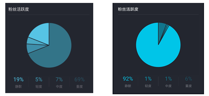 下面講一下抖音的流量池,也是影響你的賬號能否做起來的直接原因。如果你的號持續一周播放量在100 以下就會被視為低級號或者是廢號,就會被歸屬于低級流量池,這種號就不要再做了,把它拋棄掉。 播放量在300左右的號為最低權重,歸屬于中級流量池。這種號必須進行內容優化,給它向上面去推送的機會。 播放量持續上千則是待上熱門賬號,歸屬于高級流量池。基本上能夠達到2000左右,甚至能夠觸及4000~5000左右,這就是一個狀態非常好的賬號。那么你隨便去貼貼蹭蹭熱門,比如這里邊有些熱門的音樂,熱門話題,包括我們會做一些任務,通過這樣的方式進入高級流量池,很快就容易觸發后邊的機制。 接下來說一下幾個觸發機制。這里邊有一個原理叫做疊加推薦原理,對于抖音來講,它是有幾輪推送。如果你不是特別爛的這種號,基本上都會給你200~500的流量推送。第1輪推送的時候,你要想辦法要保證有10%的點贊,同時要有評論互動,以及60%的完播率。這些都要在一個小時之內完成,那么這時候就會觸發第2輪推送,第2輪推送會根據你的互動量、點贊量和完玩播率,繼續再給你推流量,大概給到1000~5000左右流量。當你視頻發布一小時內播放量到5000以上,點贊數高于100,評論數高于10,就會觸發第3輪推送,一旦上去就相當于上熱門了。 但是這個數據如果只是人為的話,可能很難做到這一點。當你發現自己的作品已經被第2輪推送,當播放量已經達到2000~3000左右的時候,怎么迎來第3輪推送?這時候可以采取一些措施,比如付費買抖加等。 抖音賬號的優化 下面講一下賬號的優化,首先要弄清楚自用號和三方號的概念,自用號是拿自己手機注冊的賬號,三方號是用 QQ、微信、微博等第三方平臺登錄的帳號,沒有用手機注冊,也沒有綁定手機。自用號要做到一個賬號配一臺手機,而且是在真正使用、活躍的賬號,它的權重才是最高的。 第二,如果還想增長權重,從垂直角度來講,你的自用號不要做任何其他的使用,不去推薦頁面看任何東西,所有看到的關注的都是跟自己業務相關的。舉一個例子,比如說我這里有一款面膜,希望得到的用戶一定是跟化妝品有關系的,年輕時尚的女性,這樣的話我需要關注什么?通過關鍵詞搜索到跟競品類似的號,去關注這樣的至少20個粉絲量大概在20萬以上的大號。同時你要不斷的在固定的時間去看他的作品,而且要把作品看完,同時點贊,證明你對他的產品感興趣,對他這個領域的作品感興趣。我們所有行為都是為了打標簽。 第二件事情要去認真的給他進行評論,需要有價值有質量的評論,爭取引發互動,讓抖音號的博主給你進行回復,那么這樣就會增加一個有效的權重。第三件事情,轉發到你自己的號里面去。 另外,賬號要矩陣化運營,做各種各樣內容的分發,不斷的去讓你的視頻露出。因為AI算法會基于海量的視頻庫,在這里面不斷的去抓取、打標簽,在這過程當中同類的視頻產生的越多,就會產生更多的關聯,被打相似標簽的潛在粉絲也就越多,下次你再做推送的時候,潛在用戶的基數大了,抓取類似標簽用戶的機會也就更大了。 還有非常重要的一點,就是前期所謂的養號,一定要控制住看別人號的強烈欲望,不要隨意去點任何東西,盡量不要去推薦。此外,要階段性3~5天不要發任何東西。如果你的號已經成了,但是一直都不是特別精準的話,你可以空下來,階段性不發。 下面兩個圖展示了不同賬號的粉絲活躍度,左邊的賬號粉絲并不多,大概也就三四萬,沉默用戶只占19%,絕大部分都是非常強活躍度的用戶,其中有69%是重度粉絲,那么這個賬號的互動率、轉化率就會非常高,這就是一個非常好的優質賬號。