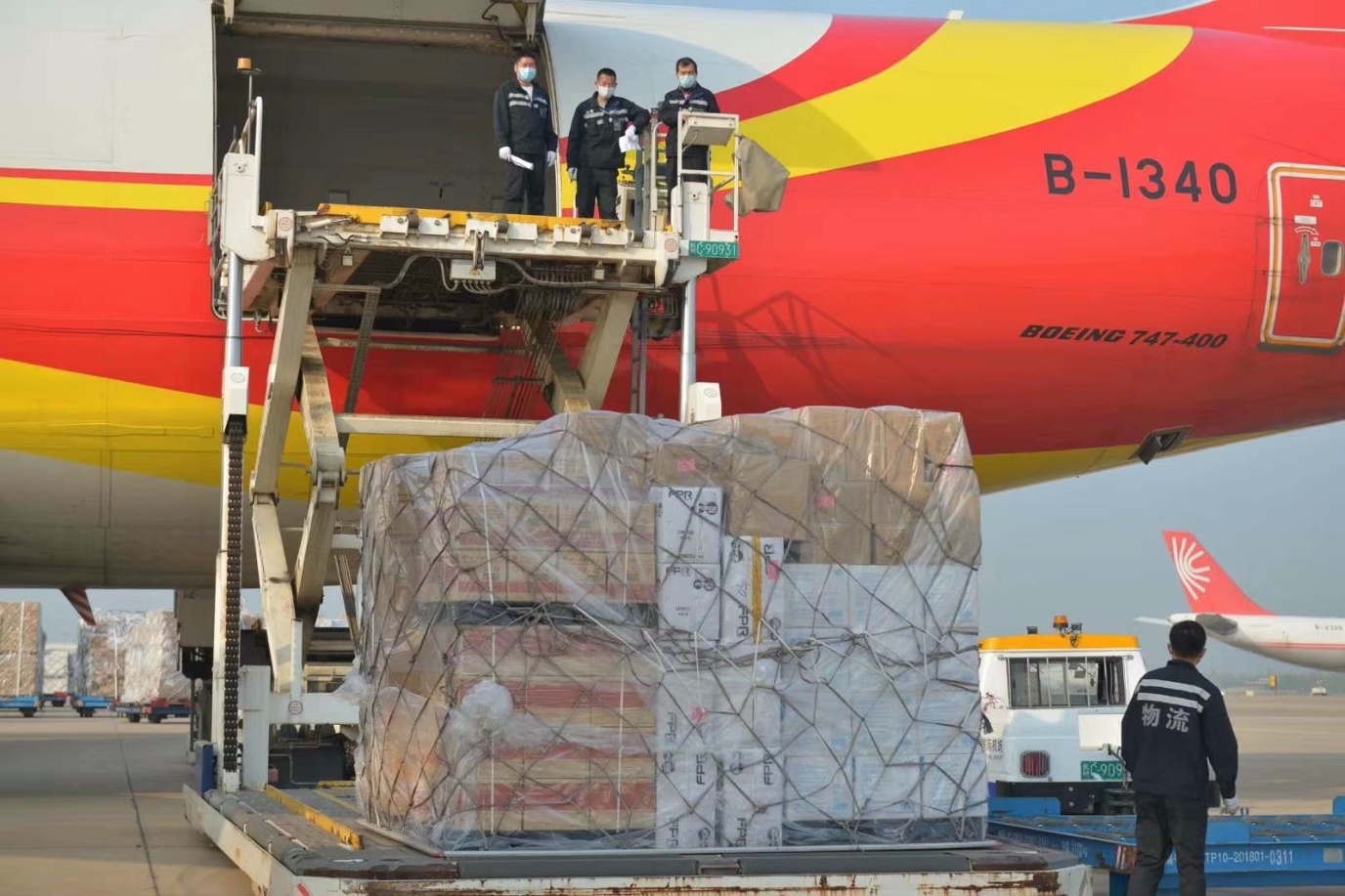 2020年4月8日,被按下“暫停鍵”76天的武漢重新出發。 上午9:30,海航集團旗下Y87447貨運包機航班滿載70余噸來自湖北仙桃、宜昌、武漢等地的口罩、防護服、護目鏡等防疫物資從中國武漢起飛馳援澳大利亞。