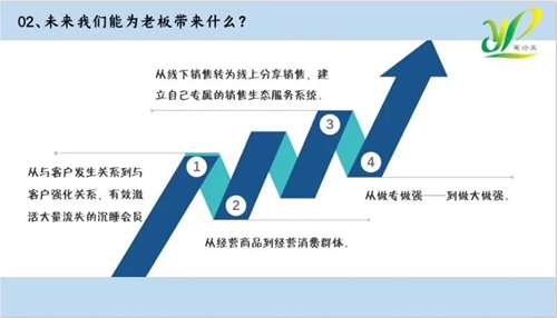 3 賦能門店 打造線上線下的新型零售生態 如果要問在這次疫情中,零售服務和銷售人員感受最大的變化是什么,已經用不著公司+互聯網或者公司互聯網+的討論,在市場和消費者之間需要換成一個更簡便的思路,如何拿質量最好的產品,以最低的價格,用最便捷的方式,送到需要的消費者手里,幫扶渠道成交,幫扶門店建立核心優勢資源。英倫派全民實體新零售的核心也在這里,在消費和消費者之間如何建立一個良好的口碑和信任機制,是布建線上線下新型新零售業態的關鍵。 對于賦能門店,線上線下的全民實體新零售,用英倫派總裁菅曉鵬先生的話說,“我們是一個國內生活用品市場銳意進取的征戰者和殺戮者,也是一個傳統行業的引領者和創新商業模式的構建者。”
