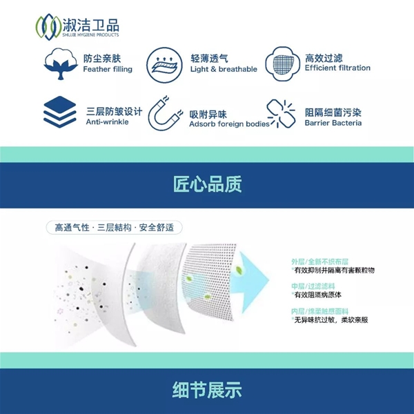 淑潔衛(wèi)品二十年專(zhuān)注衛(wèi)品護(hù)理,老品牌,可信賴(lài)。這次更是積極響應(yīng)全民抗“疫”的號(hào)召,開(kāi)發(fā)投產(chǎn)全新產(chǎn)品一次性口罩。 淑潔衛(wèi)品,為愛(ài)護(hù)航!