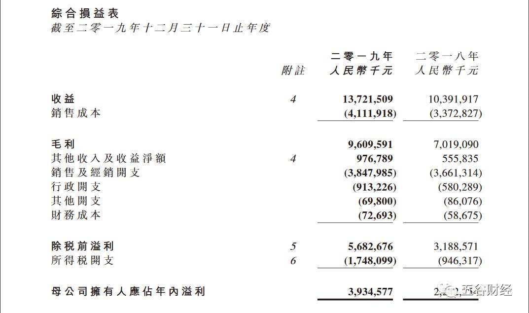 公告顯示,2019年,飛鶴總收益約為137.215億元,與去年103.919億元相比,增幅在32%左右;母公司擁有人應占年內溢利約為39.346億元,相較于2018年22.423億元,增幅在75%左右。