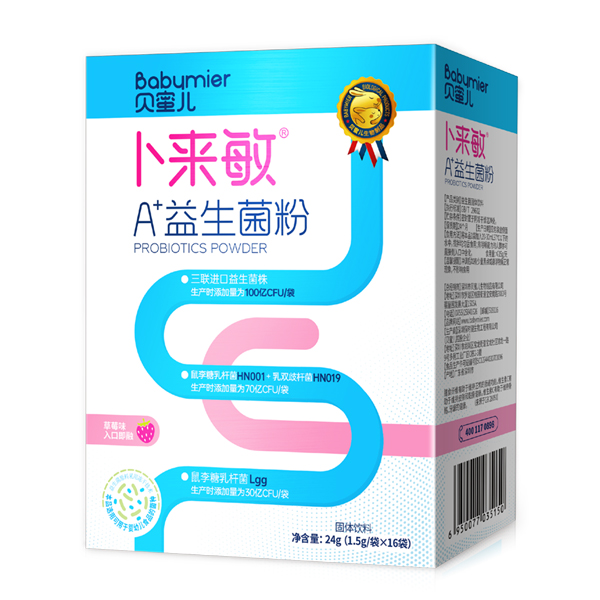 今天,小編就帶你一起了解一下貝蜜兒A+益生菌粉—— 貝蜜兒益生菌粉特點: 1.四株菌種、來自中國,適合國人; 2.活菌數量足100億,一次足量補充;富含益生元組合,協同作用更強;4+1 3.雙層包埋技術,耐胃酸,耐膽汁; 4.菌種效果經實驗證實; 5.對人腸道細胞粘附性極強,易定殖; 6.凍干粉休眠技術,常溫長時間保存;
